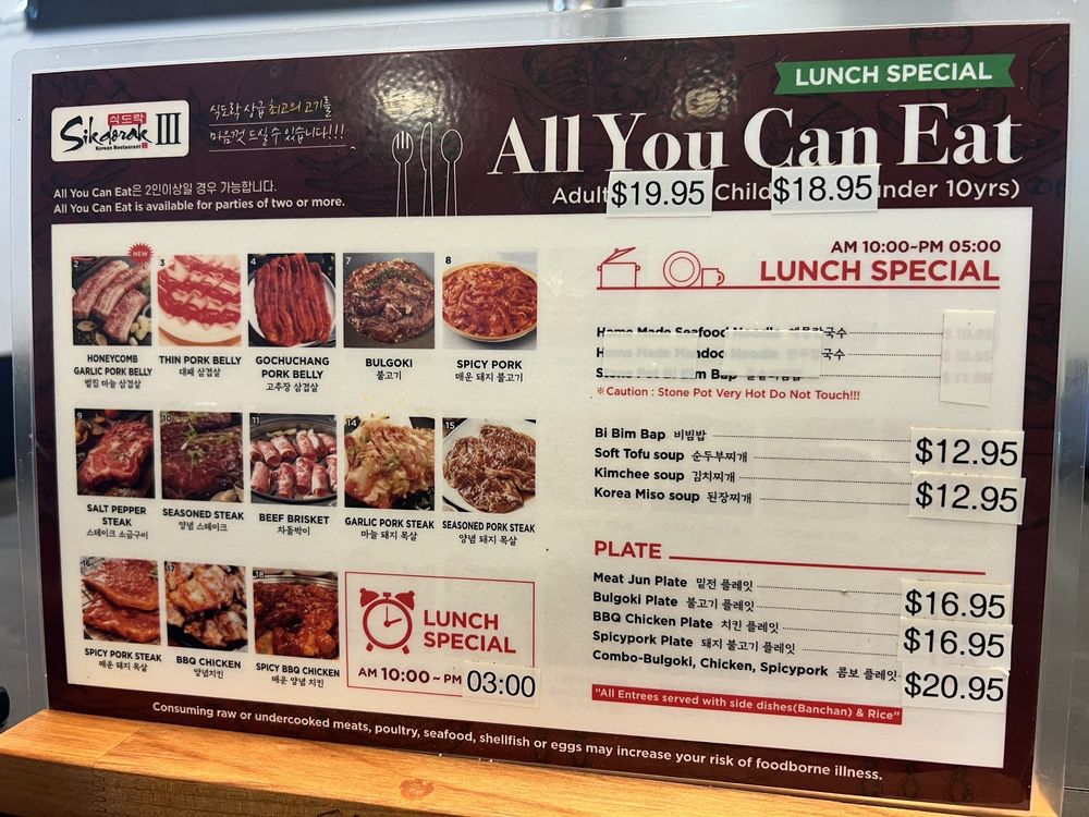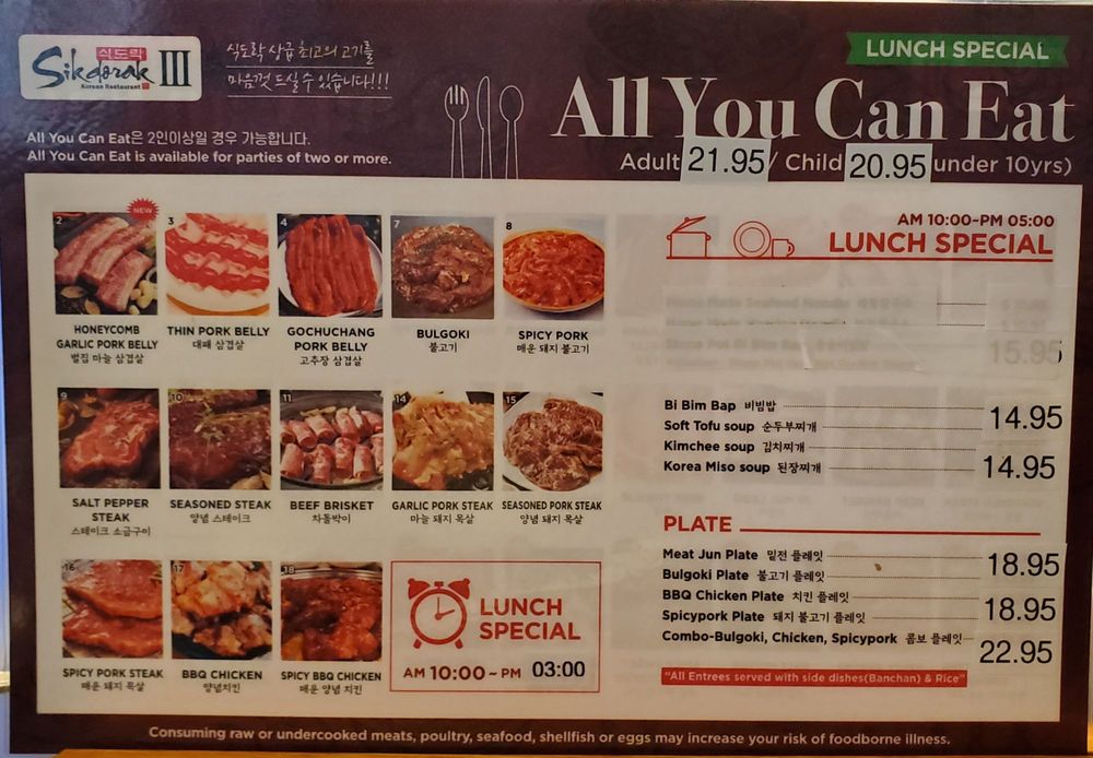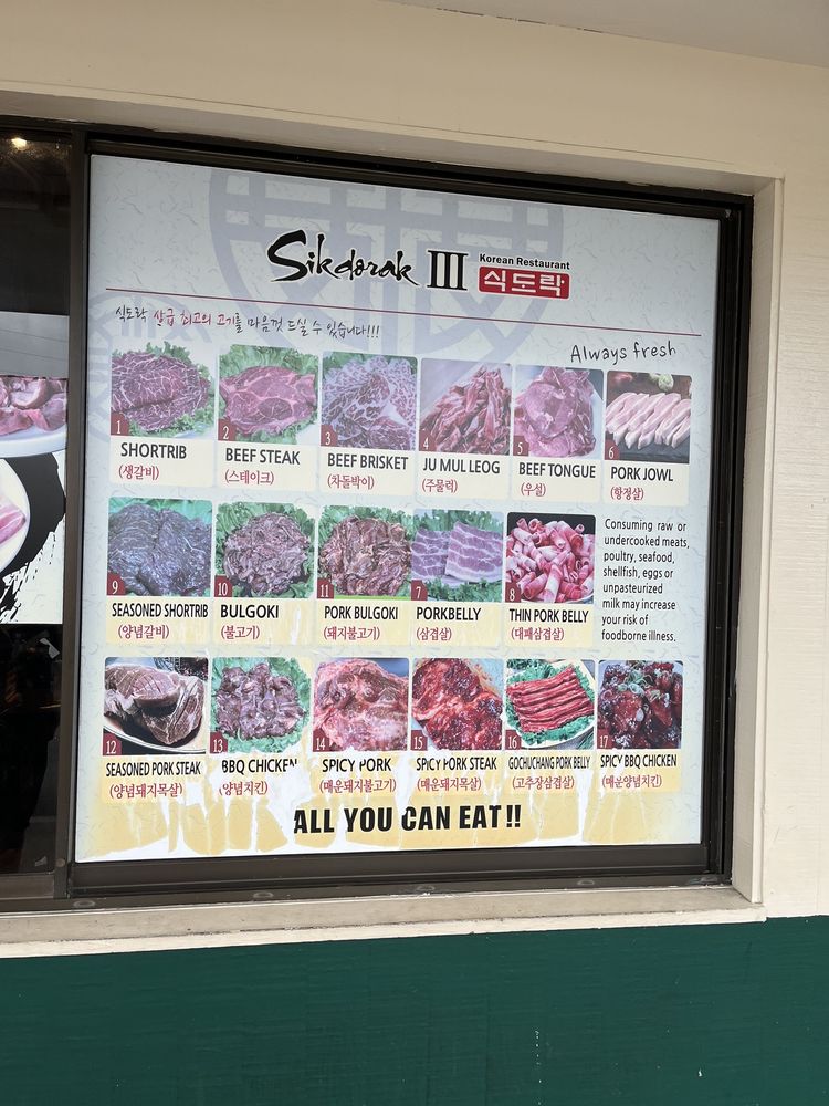 Introducing Sikdorak III, a Korean restaurant located at 98-1277 Kaahumanu St Aiea, HI 96701. Known for its excellent service and generous portions, Sikdorak III offers a casual dining experience with options for takeout, reservations, and catering. They also accept credit cards, Apple Pay, and have gender-neutral restrooms. The menu features a variety of dishes, including all-you-can-eat Korean BBQ with favorites like seasoned short rib and brisket. Customers rave about the flavorful Kim chi and the attentive service. While the restaurant can get busy, the fair pricing and quality food make it worth the wait. With happy hour specials, alcohol offerings, and dog-friendly seating, Sikdorak III is a must-visit for those craving authentic Korean cuisine in a vibrant setting.